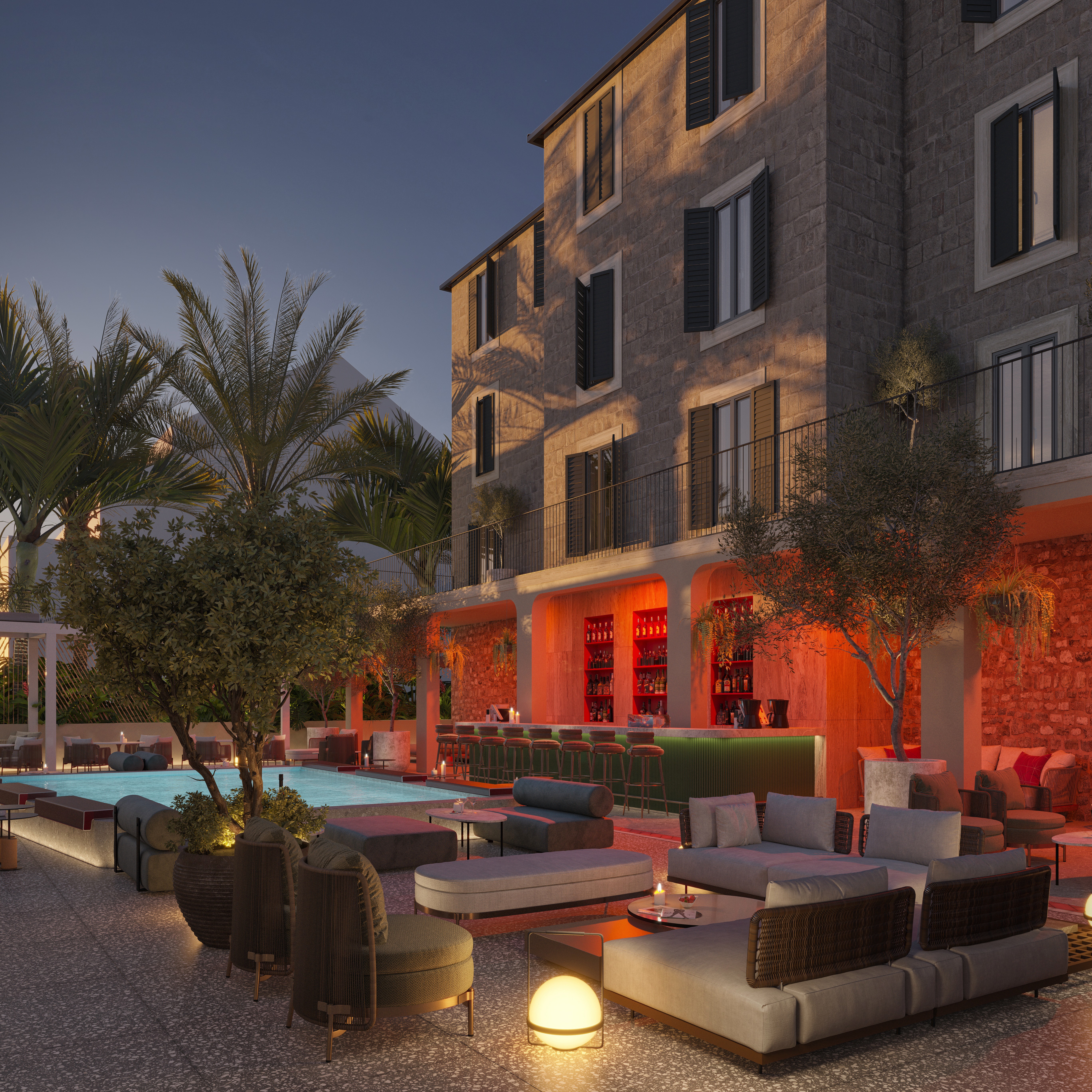Seaside reconstruction of a traditional house on the Split Riviera with an integrated pool bar.